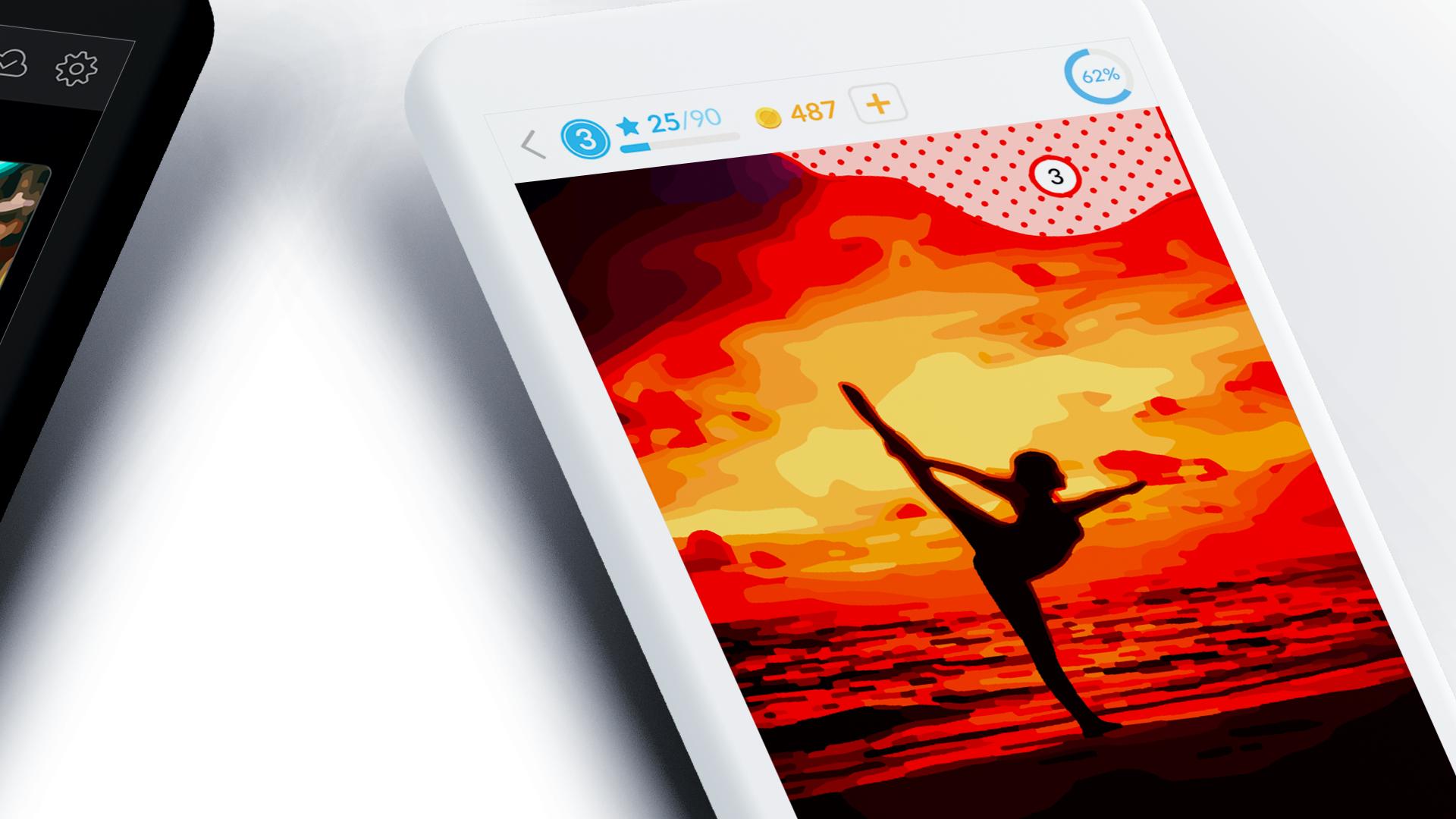 ● Almost all paint by number content is free – unlockable while gathering more coloring experience (stars) and leveling up or collecting coins. This makes the whole experience a lot more fun!