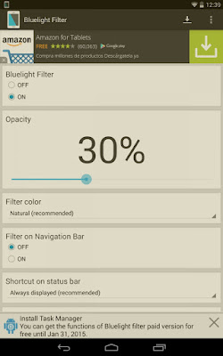 Bluelight Filter for Eye Care is an app to apply a color filter over the screen of your Android device, so you don’t make your eyes so tired by using it.