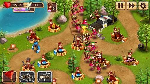 Cower defense – help fearless cows reflect alien attacks. Place fortresses and defense towers on the map, destroy alien army. Demonstrate your strategy and tactics talent in this merry Android game. Help cows craft an impregnable military base and stop the enemy. Place fire points and other defense constructions along the road along which aliens move. Upgrade your towers and increase their fire power. Win the battles and unlock new maps. Apply unique power-ups during the battle.