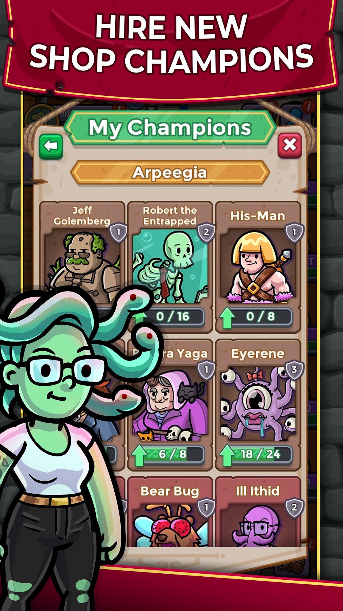 ● Hire unique champions who give special limited time boosts and power-ups to your shops.