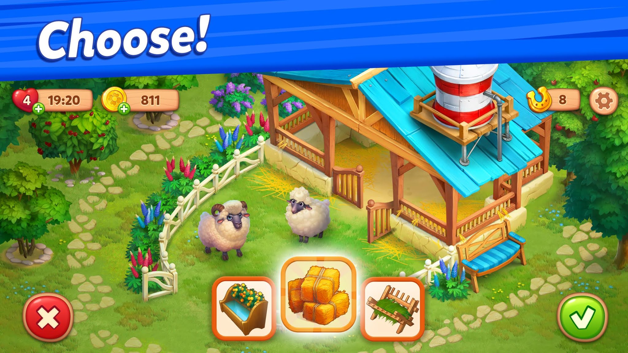 The renovation process in Farmscapes goes beyond mere aesthetics. It allows players to choose from various items and objects, providing them with the opportunity to personalize and decorate Mary’s house according to their taste. For instance, when unlocking a chandelier, you’ll be presented with multiple options, enabling you to craft a unique and beautiful living space.