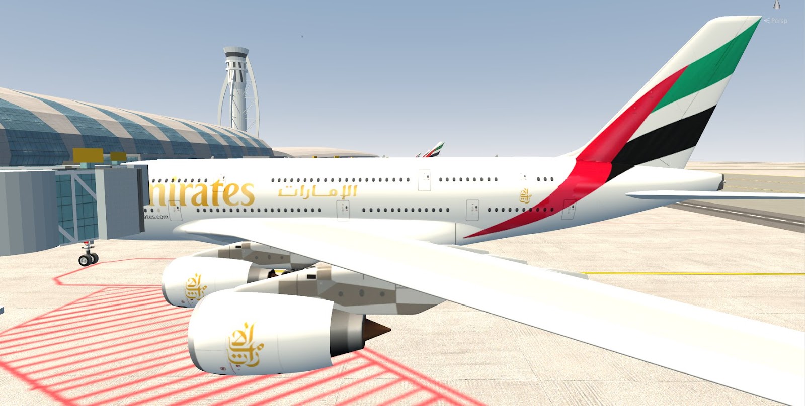 • Realistic airport environment (buildings, taxiways, parking area with jetways, runways)