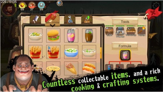 · Try loads of food to stay alive and cook your own meals Lizards Insects Braised beef.