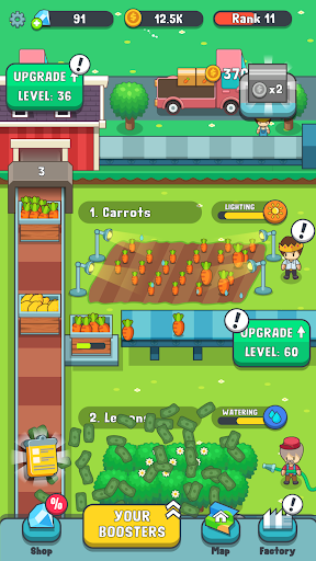 In this idle game you will be managing farmers, factory employees and delivery to upgrade our business to the next level.