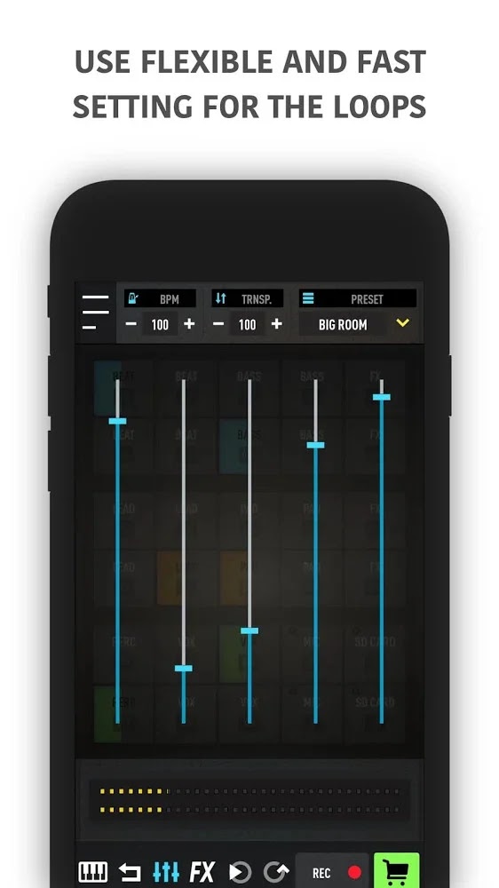 • Flexible launchpad audio mixer for precise sound tuning and mixing