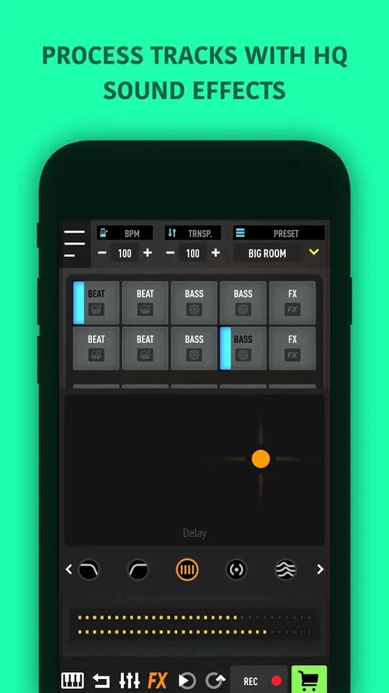 • 9 PRO DJ sound effects of studio-quality: Delay, Reverb, Flanger, Low Pass, High Pass, BandPass, Notch , Low Shelf, High Shelf Filters