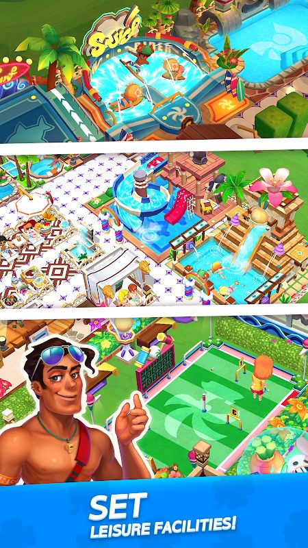 – Install various activities: Surf, Restaurant, Swimming Pool, and more