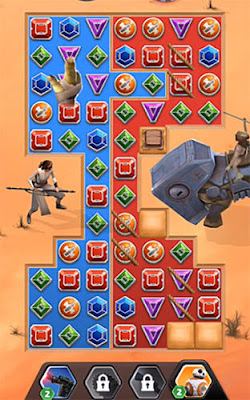 Star wars: Puzzle droids – sort out colorful crystals and make lines of them to unblock the memory of BB-8 droid and learn about all events in the faraway galaxy. In this Android game you will meet popular heroes of “Star Wars:The Force Awakens” such as Rey, Finn and many others. You will experience a journey across faraway galaxy together with a cute droid. You must find discs with data in order to get the details of the adventures of droid and other heroes. Make lines of 3 and more same colored crystals to complete tasks.
