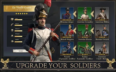 Each troop has its own characteristics, pick your troop and conquer the world by winning all battles. Unlock and train different types of troop from various countries, such as American militiaman, Prussian Jaeger, French Cuirassier, French 12-lber Artillery, and Polish Lancer.