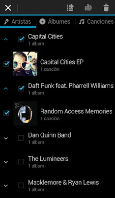 The first time you use the app, your device will automatically recognize all of the artists and albums that you have on your memory, and it will organize them so that you have quick access to all of your songs.