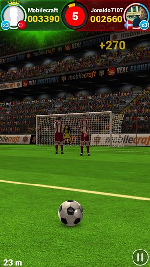 Flick shoot US: Multiplayer – go out onto the field and do flick shots at opponent’s goal. Try to score as many of them as possible. Aim carefully, calculate the trajectory of the ball, trick the goalie, and aim your ball for the goal in this game for Android. Improve your skills in different single player modes. Compete 1 on 1 with players from around the world. Take part in tournaments with prizes. Create a unique character choosing the appearance, sports clothing and footwear. Buy new balls and equipment.