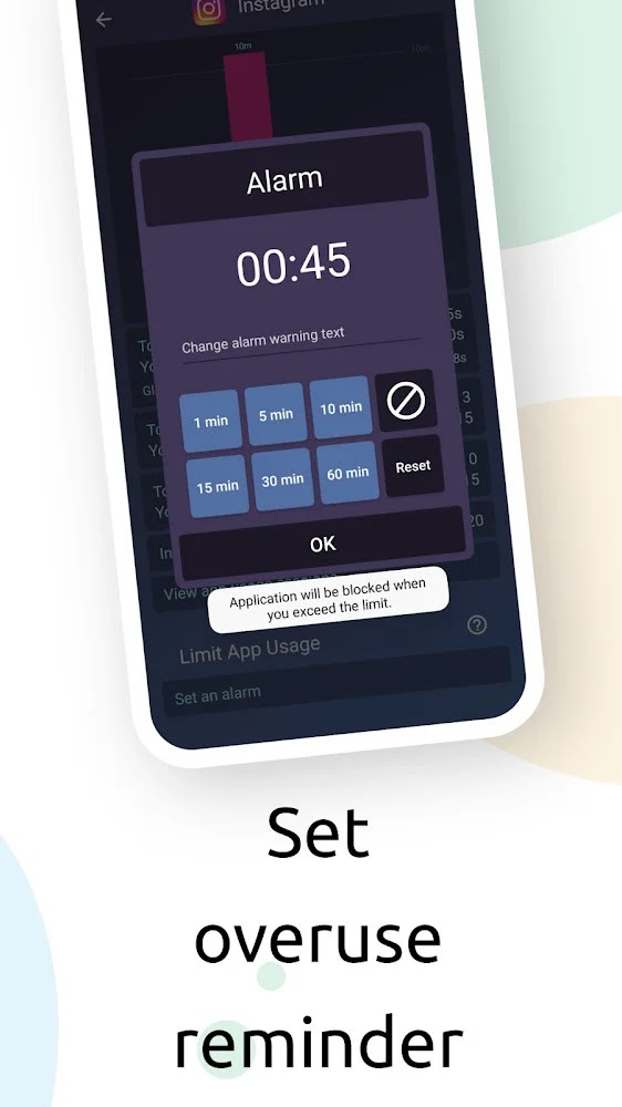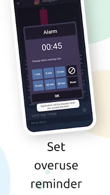★ Over-use reminder: notify you when you are spending too much time in an app and start your digital detox.