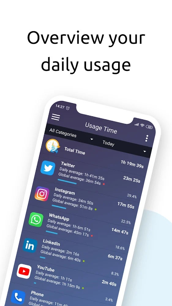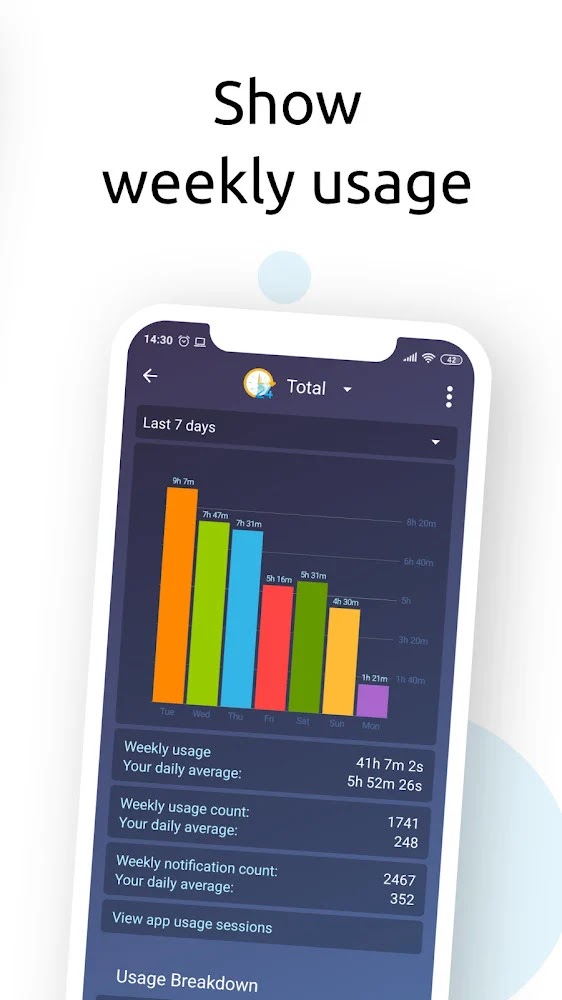 ★ App usage history: view charts and statistics of your usage history.