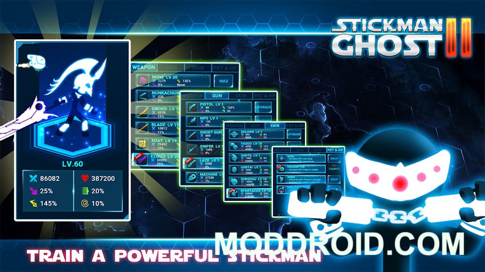 Stickman Ghost 2: Galaxy Wars is the best offline RPG game that you have never experienced. This offline RPG game is also the perfect combination between fighting games and action games. In this League of Stickman version, the stick hero returns to a more attractive, challenging gameplay in a combination of stick and war games. Transform into a ninja warrior.