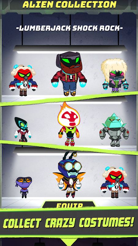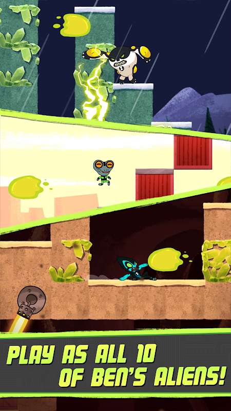 Play as all ten of Ben’s alien heroes, including Four Arms, Heatblast, Diamondhead, XLR8, Cannonbolt, Shock Rock, Wildvine, Grey Matter, Stinkfly, and Overflow, PLUS Omni-Enhanced and crazy costumed versions of the aliens. There’s always someone new to unlock!