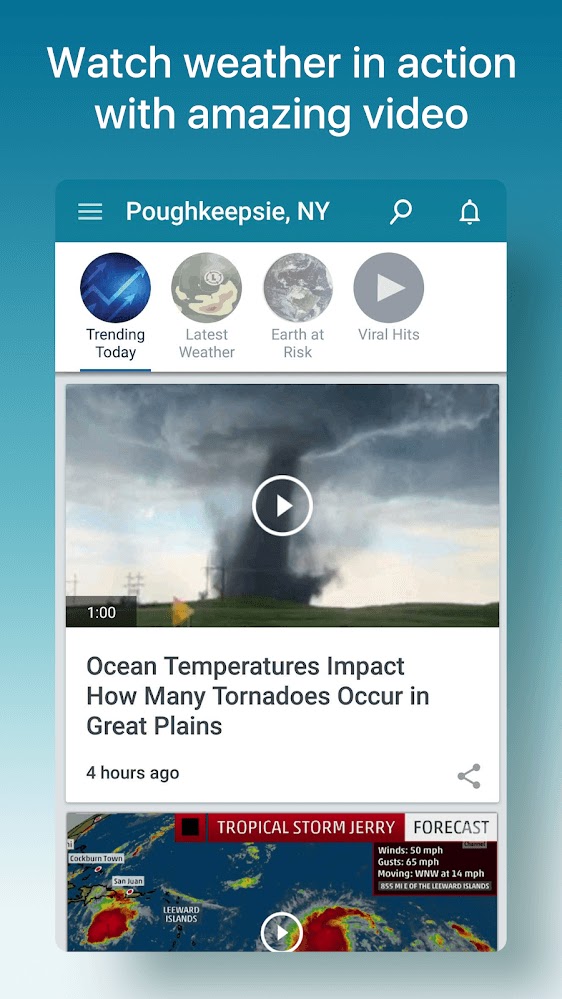 – Live alerts for additional coverage on extreme weather events and tornadoes