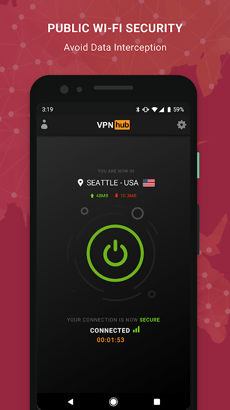 - Protecting You on Public Wi-Fi: Public Wi-Fi networks are a convenient choice for internet access when you’re on the go. However, they can also be a breeding ground for potential threats. VPNhub eliminates these concerns by encrypting your data when you connect to public Wi-Fi. This robust security measure ensures that sensitive information, such as bank passwords and social network credentials, remains out of reach for malicious actors. With VPNhub, you can connect to any Wi-Fi network with complete peace of mind.