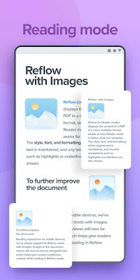 • Reflow reading mode shows the PDF text at a size of your choosing
